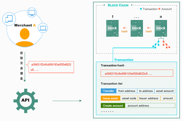 A商家调用“发行数字资产”接口,完成资产在区块链上登记、发行;资产登记在区块链中,完全数字化。