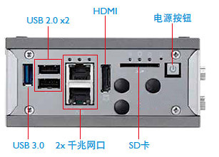 -丰富的I/O接口: 1x HDMI, 2x USB 2.0 + 1x USB 3.0, 2x GbE网口,可选4个隔离DI/O - 2x Mini PCIe插槽 (1个支持mSATA), 1x USIM卡槽,1x SDIO